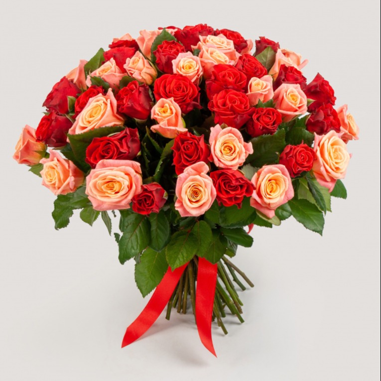 Пышный букет из 51 красной и розовой розы поможет создать романтическое настроение на свидании или станет прекрасным подарок для любимой к памятной и важной дате. Лаконичный и роскошный букет, который способен говорить о чувствах напрямую!