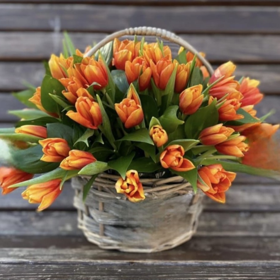 Букет включает в себя 51 прекрасный тюльпан, которые радостно раскрывают свои нежные лепестки. Этот деликатный и элегантный букет станет прекрасным дополнением к любому празднику или особому случаю. К тому же, букет упакован в стильную и эффектную упаковку — корзину, придающую ему еще большую романтичность и эстетическую привлекательность. Это идеальный подарок, который порадует и восхитит получателя своей красотой и свежестью.