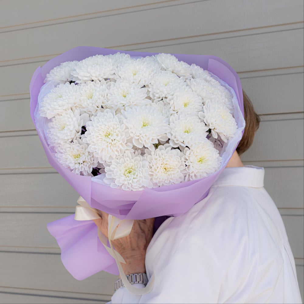 Белая Опера - это симфония нежности и элегантности. Семь белоснежных кустовых хризантем, словно балерины в пуантах, кружатся в нежном танце, создавая облако изысканной красоты. Пушистые соцветия кустовых хризантем сорта Алтай, похожие на взбитые сливки, источают тонкий, почти неуловимый аромат, который наполняет пространство тихим шепотом любви. Сиреневая упаковка эколюкс, словно бархатный занавес театра, подчеркивает безупречную чистоту цветов и добавляет композиции нотку изысканного контраста. Этот букет - как признание в любви, написанное на языке цветов. Он говорит о том, что даже в простоте можно найти роскошь, а в минимализме - истинную красоту. “Белая Опера” - для тех, кто ценит утонченность и понимает, что настоящее искусство всегда остается вне времени. Размеры: диаметр до 55 см., высота до 50 см. Состав: хризантема кустовая Алтай - 7 шт., упаковка, ленты