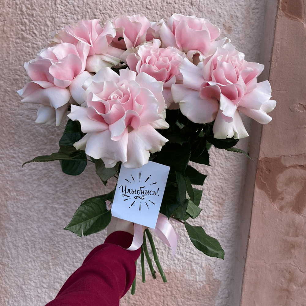 Букет из 7 французских роз Мондиаль Пинк 60 см
