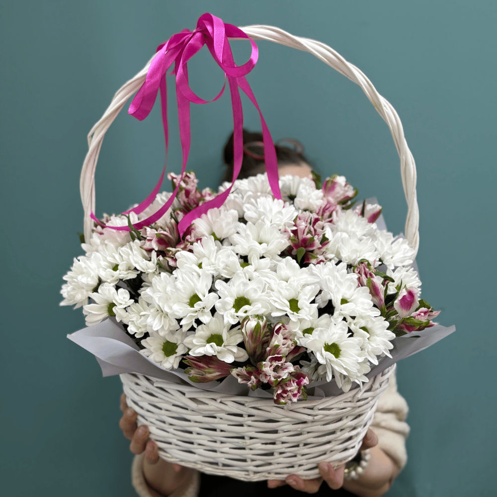Корзина с цветами «Букет из 7 кустовых хризантем»