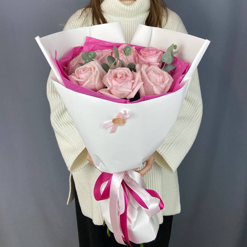 Невероятный букет из 7 роз и эвкалипта❤️ Станет классным подарком на день рождения, юбилей, свадьбу, помолвку, а также приятным сюрпризом без повода😇 Букет подойдёт в подарок для любимой женщины, мамы, бабушки, коллеги, учителя, делового партнера или же подруги • КЭШБЭК 5% с каждой покупки бонусами; • Молниеносная доставка; • Всегда свежие цветы за счет прямых поставок каждые 2 дня; • Быстрая сборка букетов от 10 минут; • Удобрение для цветов к каждому заказу; Советы по уходу: ⁃ Перед тем, как поставить цветы в холодную воду, стебли необходимо подрезать на 1 см под острым углом; ⁃ Менять воду необходимо каждые два дня; ⁃ Цветы хорошо себя чувствуют в прохладном месте, вдали от отопительных приборов, сквозняков и солнечных лучей; ⁃ Сухие и увядающие листья и бутоны необходимо удалять, так как они поглащают питательные вещества; ⁃ Композицию в коробке/корзине/лукошке так же необходимо поливать раз в два дня, в центр достаточно подлить 1/2 стакана прохладной воды🙏🏻 Будем рады принять Ваш заказ и подарить Вам незабываемые эмоции🥰