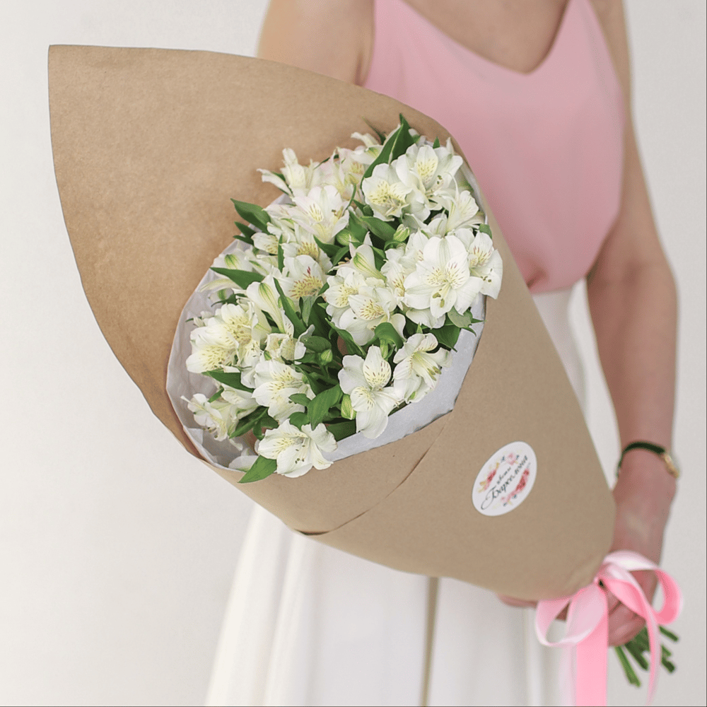 ✿Изумительный букет белых альстромерий в классическом оформлении, не раздумывая оставляйте заказ на нашем сайте, оператор обязательно свяжется с вами. ✿Превосходная стойкость. ✿Высота стебля 60 см.