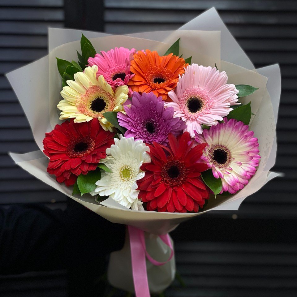 Букет из 9 гербер в оформлении
