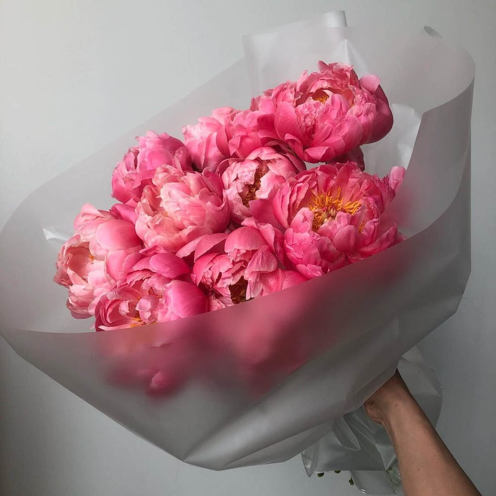 Состав: Пионы Coral Charm - 9 шт, Матовая пленка белая прозрачная кругом Размер: Диаметр: 35 см / Высота: 50 см У каждой женщины есть свои фавориты в мире цветов, но сложно найти ту, которая была бы равнодушна к нежной красоте пионов и их божественному запаху🤤Пион - король цветов и с этим сложно поспорить. Букет пионов удовлетворит запросы самой взыскательной леди❤ Роскошный аромат, пышность и величие данного цветка могут конкурировать с розой! Композиции и моно букеты пионов - отличный подарок для любимых