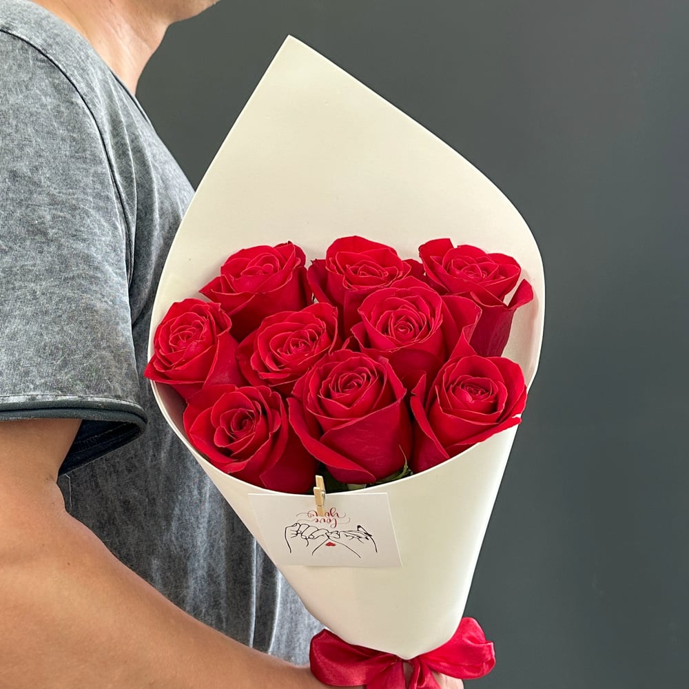 Этот классический букет из 9 насыщенно-красных роз символизирует страсть, глубокие чувства и искреннюю любовь. Каждая роза в букете выражает силу и тепло эмоций, делая композицию идеальным подарком для самых близких и дорогих сердцу людей.
