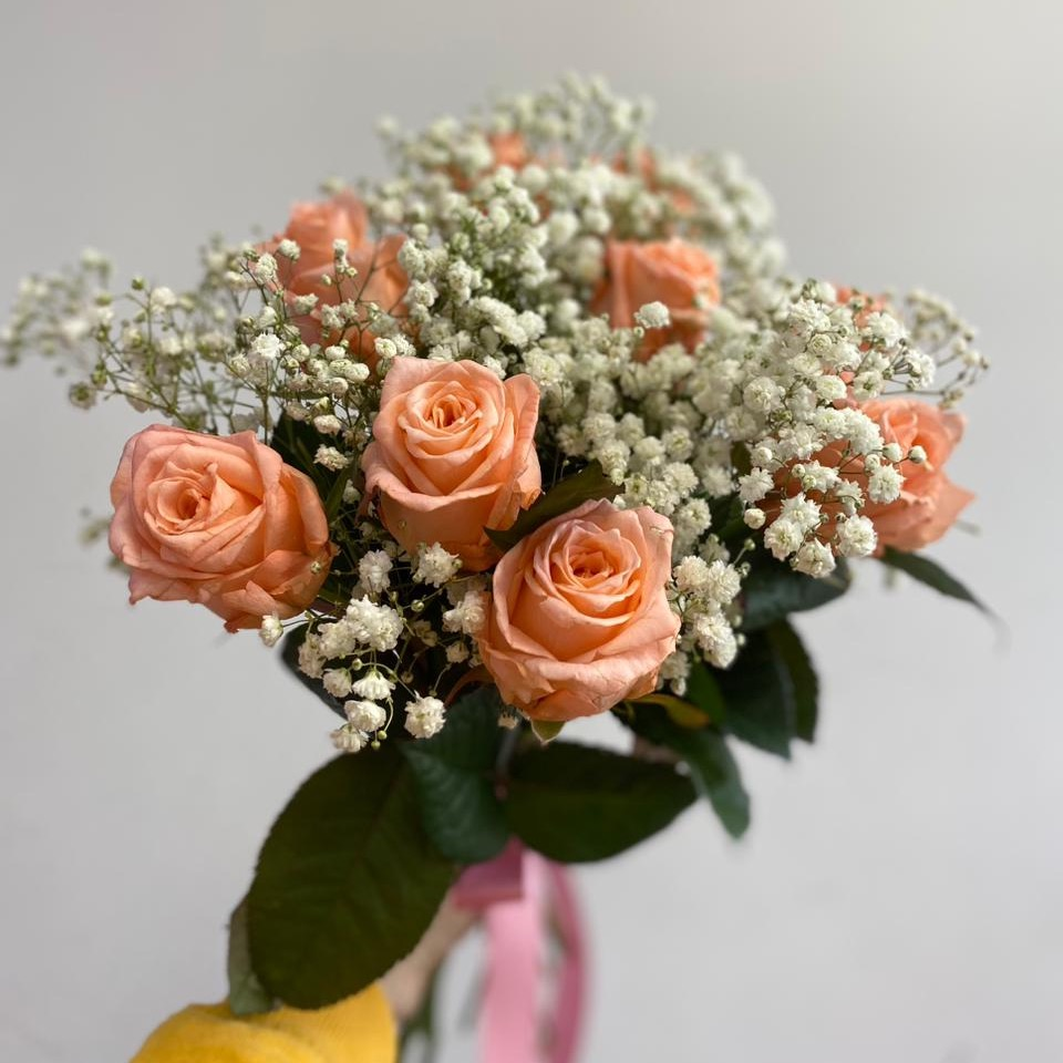 Великолепное сочетание классической красоты и легкой изящности. Розы, символизирующие любовь и страсть, дополняются розовой гипсофилой, которые добавляют нежности и романтики в композицию. Этот букет станет прекрасным подарком для любого специального случая или просто для того, чтобы порадовать близкого человека.