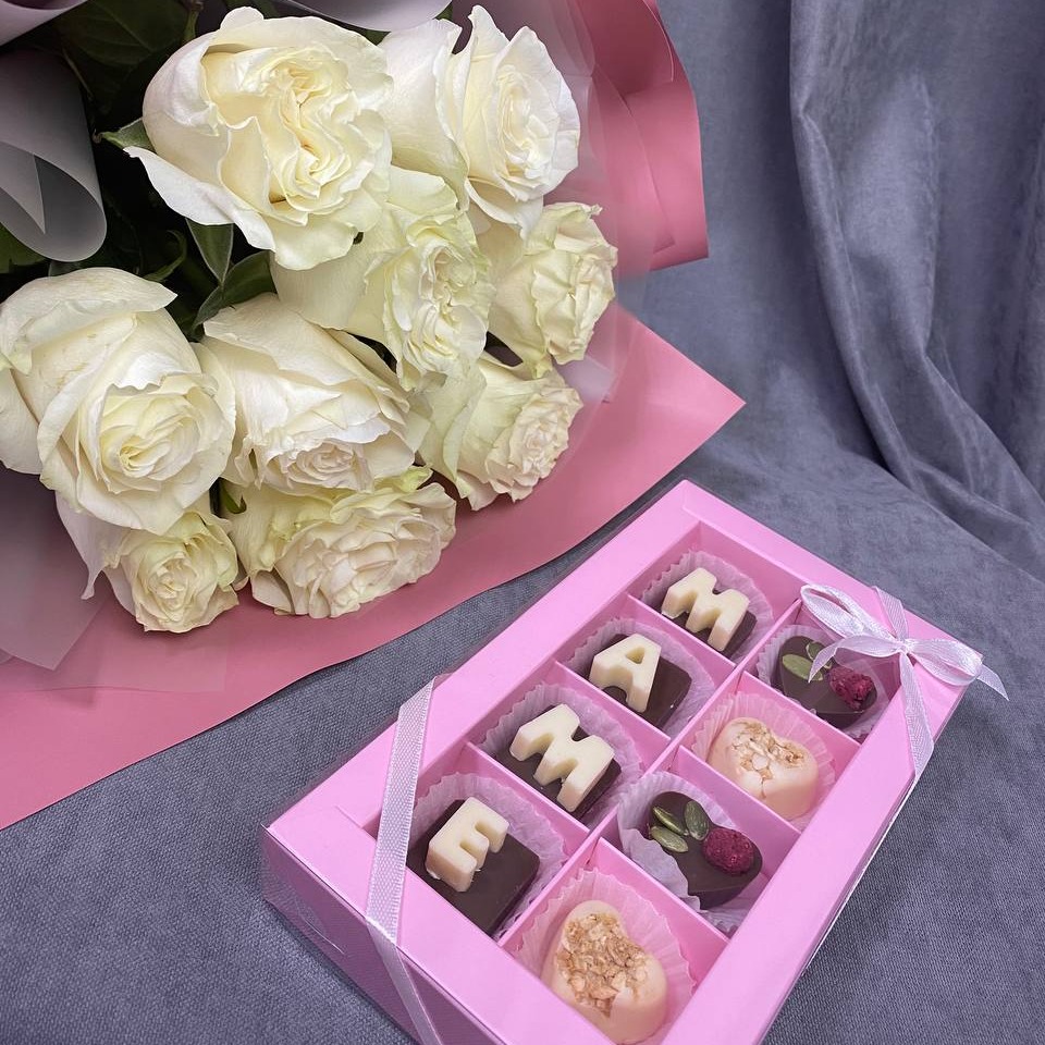 Этот изысканный букет включает в себя 9 роз мондиал в оформлении дизайнерской упаковки с атласной лентой. Кроме того, он дополнен буквами,конфетами с бельгийского шоколада ручной работы, что делает его не только красивым, но и вкусным подарком для особенного человека.