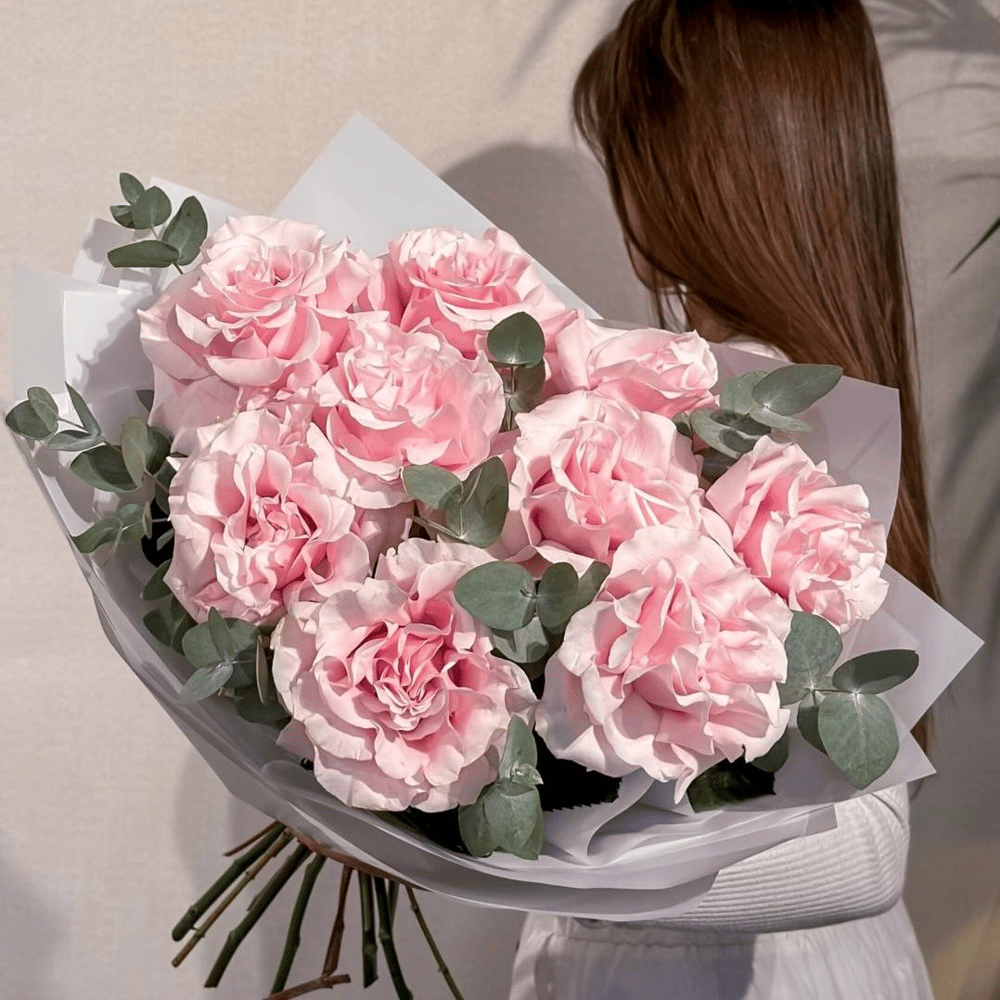 Букет из 9-ти французских роз с эвкалиптом в авторской упаковке