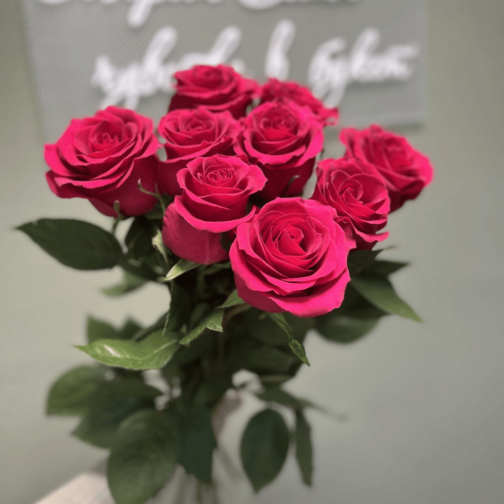 Букет из 9 Ярко - розовых роз под ленту