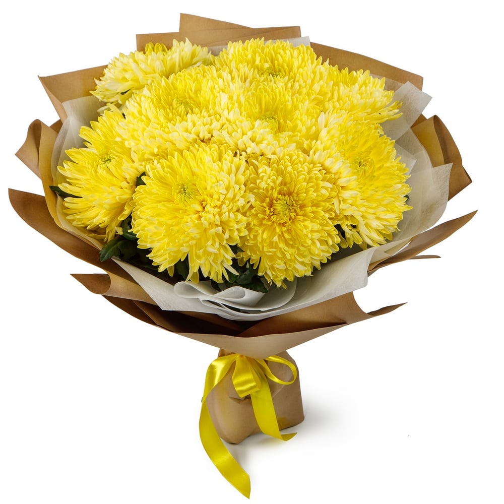Хризантема - цветок спокойствия, умиротворения и достатка. Букет из 9 желтых цветов будет хорошим подарком как для мужчины, так и для женщины любого возраста. Цвет букета уточняйте в момент заказа