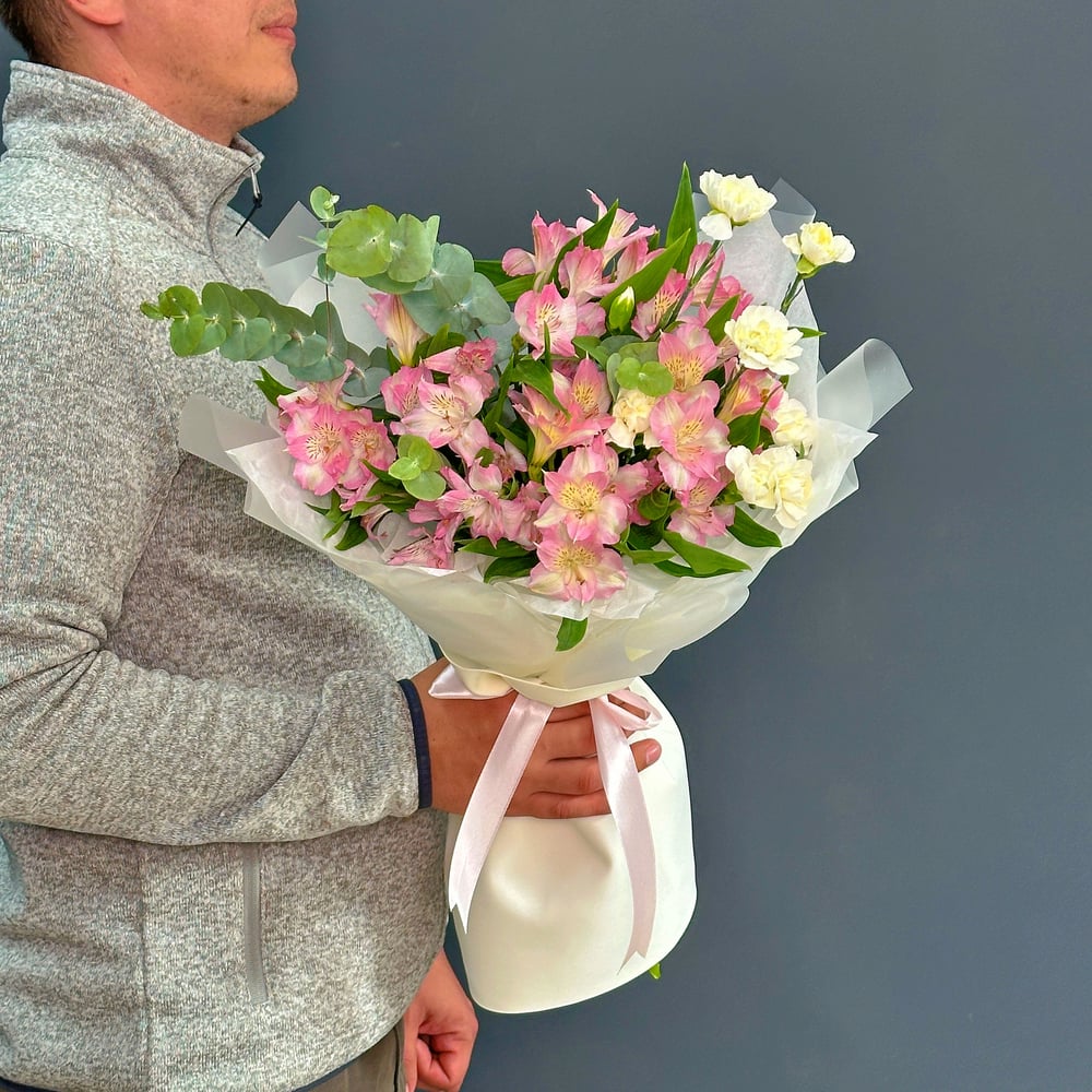 Нежный и яркий букет из альстромерий, который словно передаёт легкость и радость летнего дня. Каждая цветочная веточка наполнена свежестью и жизнерадостностью, а разнообразие оттенков — от мягких п...