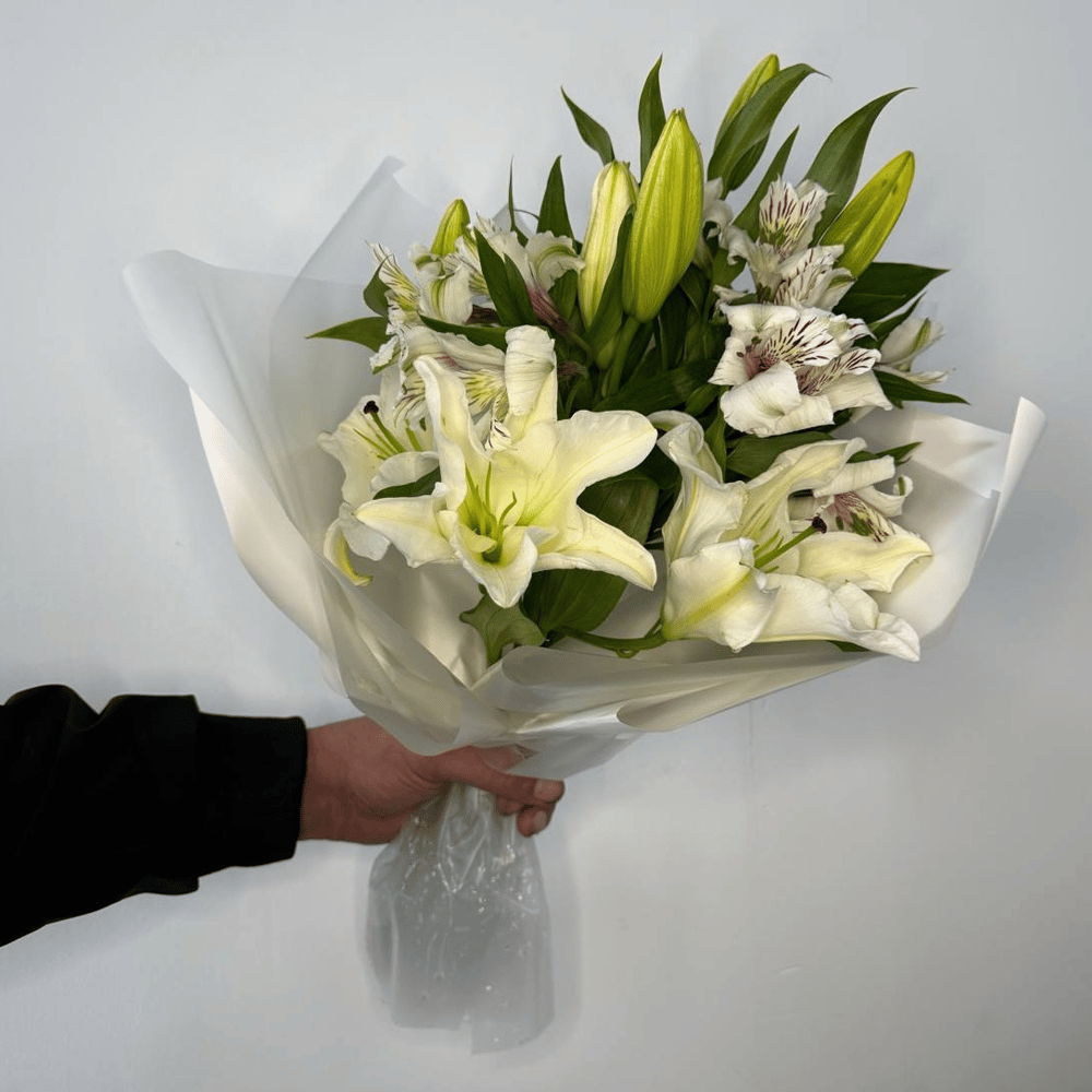 Букет из белых лилий и альстромерий