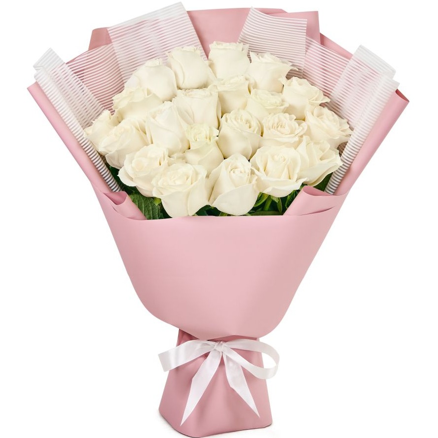 Букет из белых роз (50 см) 21 шт. К каждому букету прилагается бесплатная открытка и подкормка для цветов.
