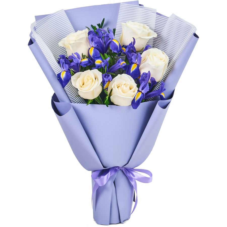Букет из белых роз и ирисов средний