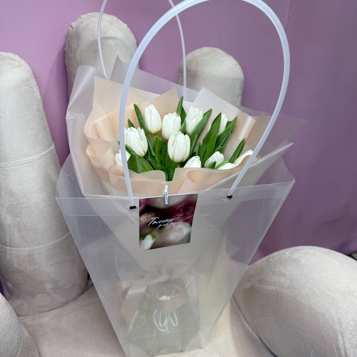 Букет из белых тюльпанов в аквабоксе