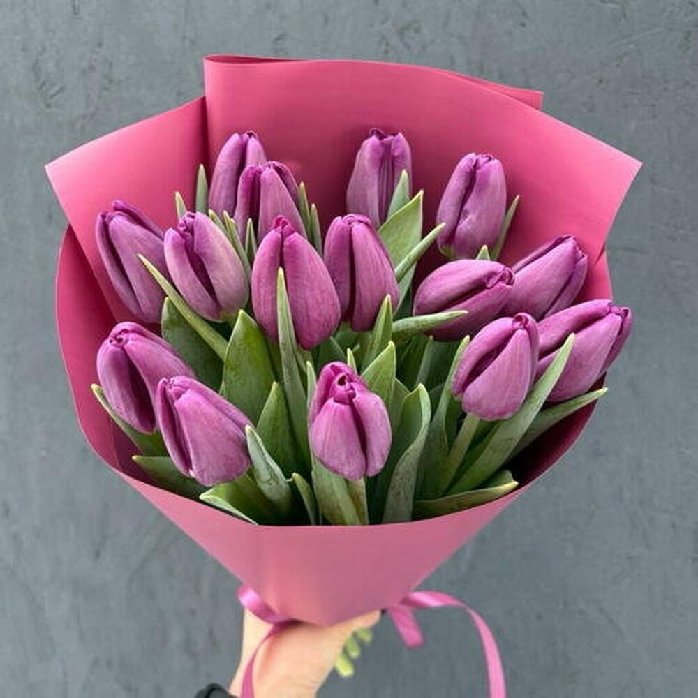 Букет из фиолетовых тюльпанов 15шт