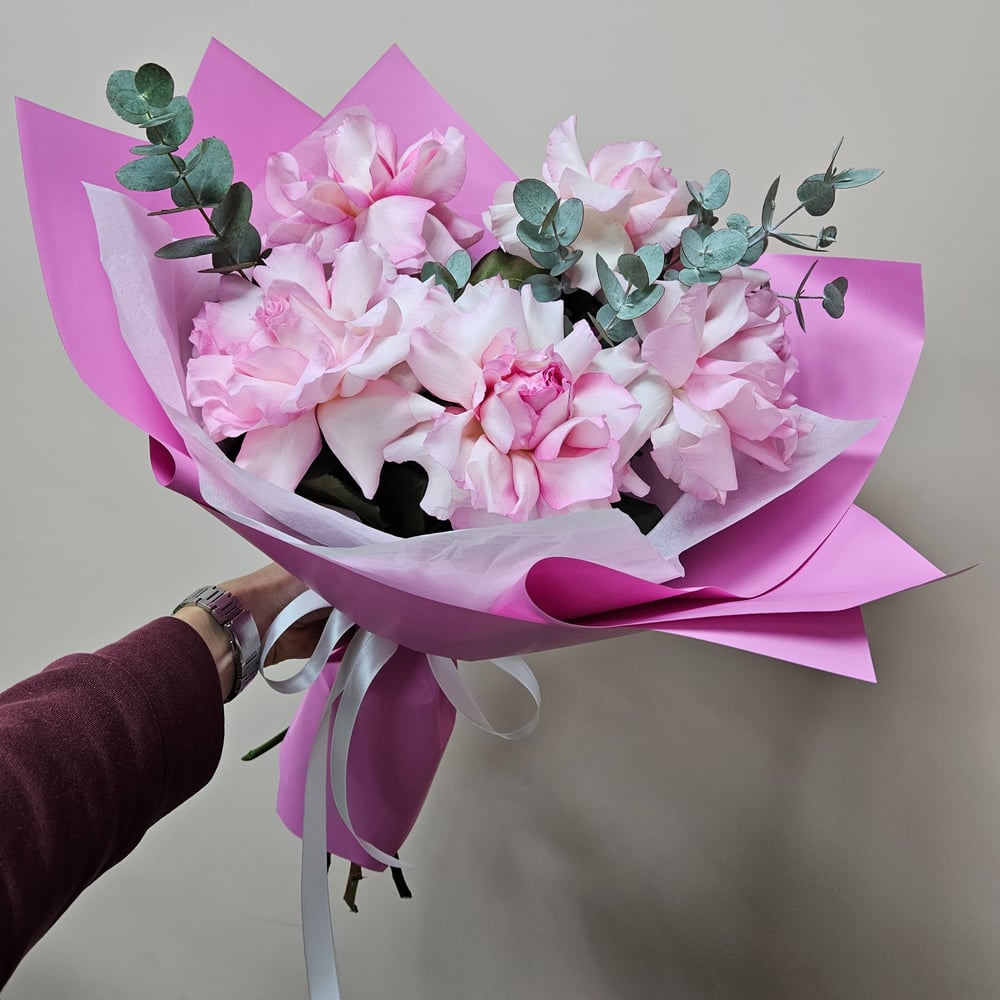 Букет из французских роз с эвкалиптом