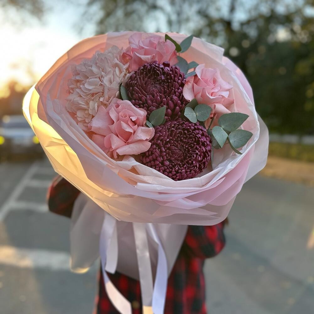 Букет из гортензии, французских роз