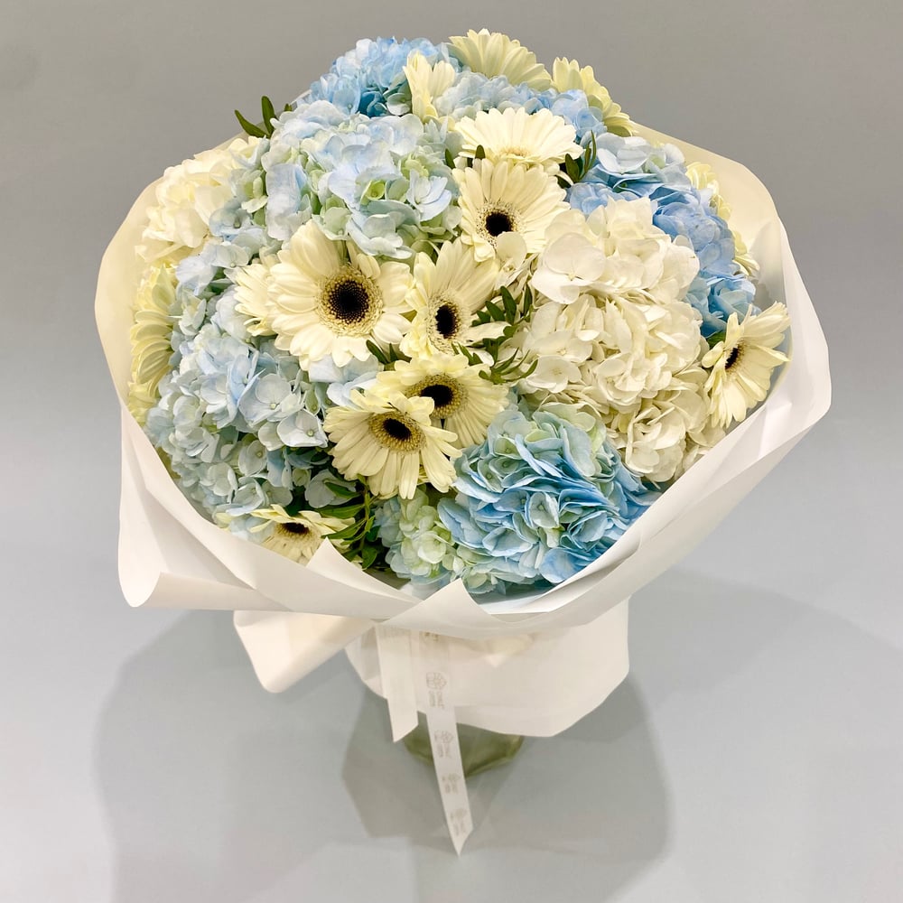 Букет из гортензий и гербер - это произведение искусства, способное передать самые разнообразные эмоции и чувства. Тщательно продуманная композиция: букет выполнен в различных стилях и техниках,...