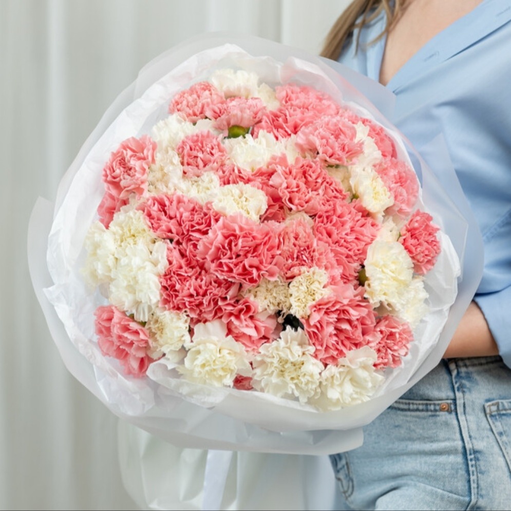 Этот утонченный букет собран из 51 ярких цветков диантуса, которые символизируют долговечную красоту и изысканность. Он упакован в стильную упаковку и украшен атласной лентой, что делает его идеальным подарком для особых моментов в жизни. Этот букет станет прекрасным дополнением к любому праздничному случаю и порадует своей нежностью и изысканностью.