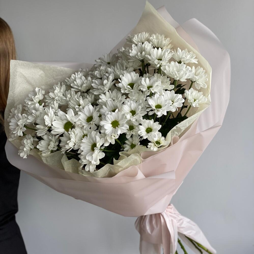 Нежный букет из 7 кустовых хризантем