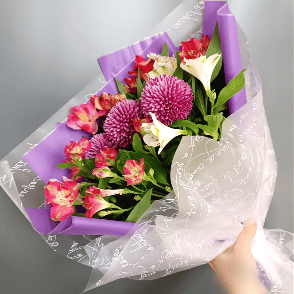 Букет из хризантем и альстромерий 02