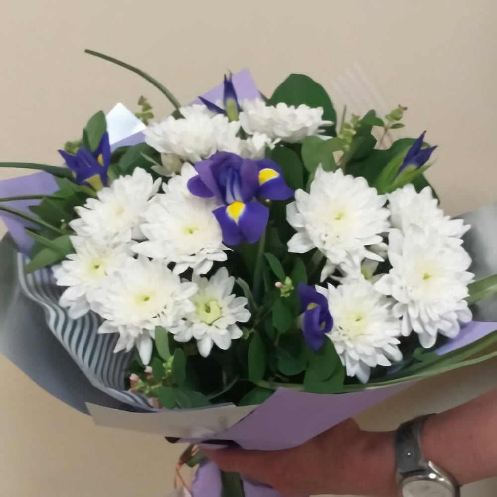Букет из хризантем и ирисов