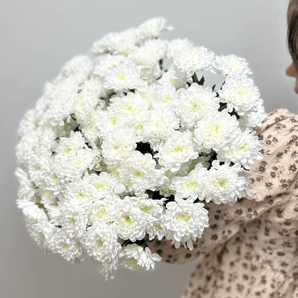 Пышный букет из прекрасной белой хризантемы.