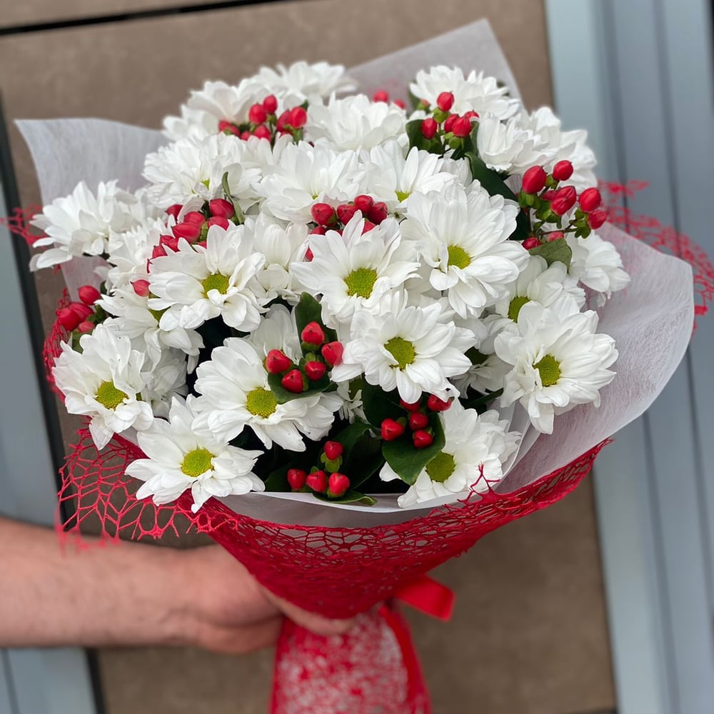 Букет из хризантемы и гиперикума