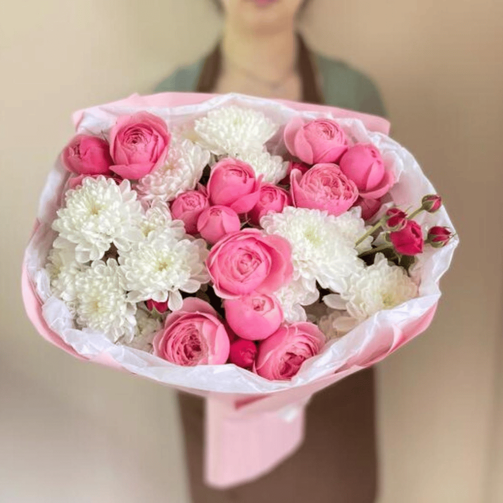 Букет из хризантемы и кустовой розы