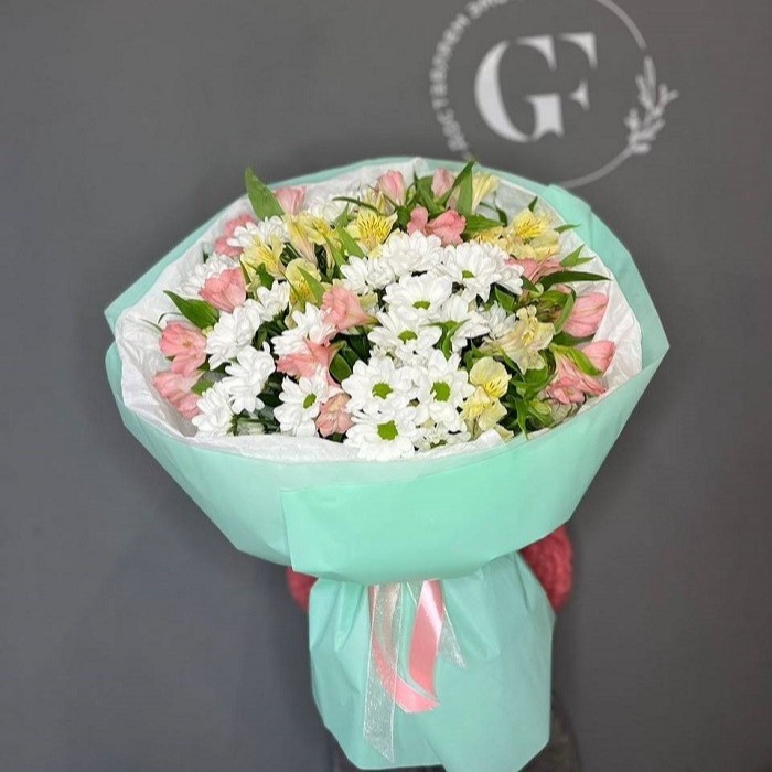 Букет из хризантемы с альстромерией