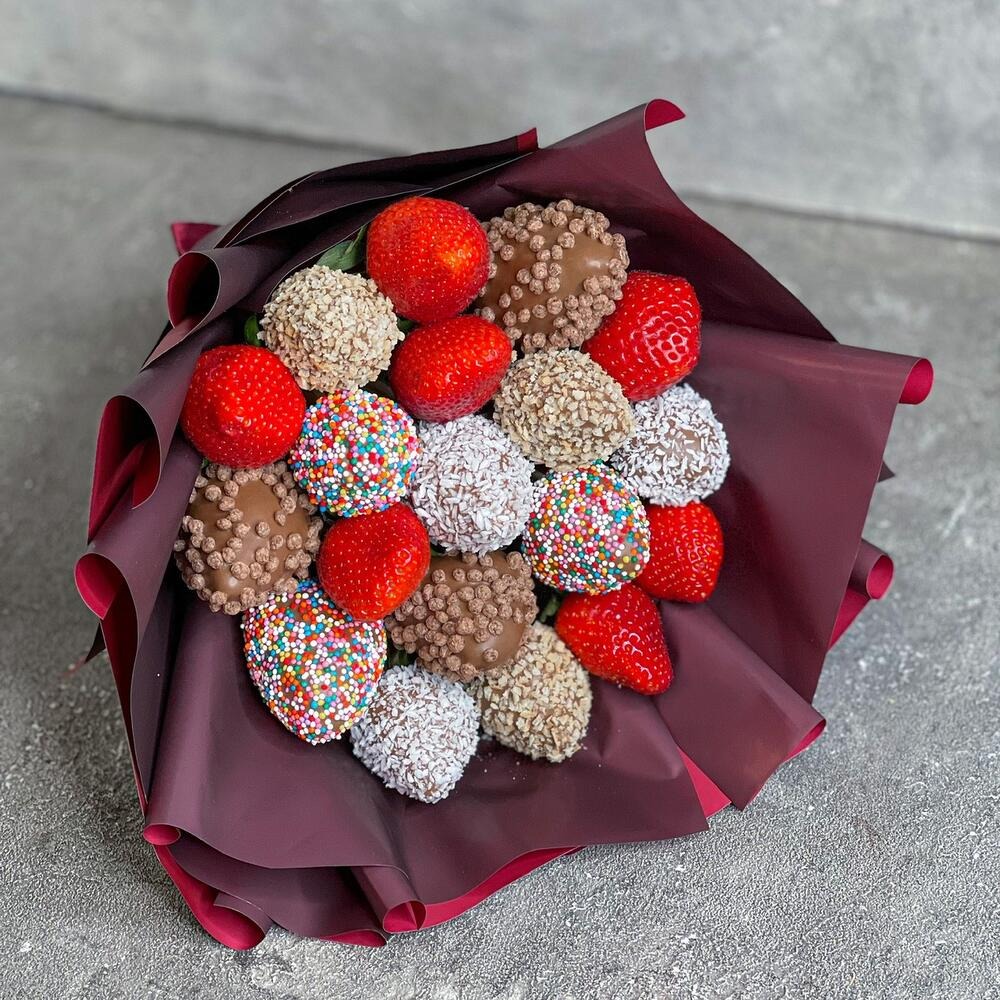 Ищите чем удивить девушку? вариант цветы, как обычно, уже не цепляет? тогда клубничный букет идеально закроет ваш запрос. Подарит невероятные эстетические и вкусовые эмоции. Свежая клубника в качественном бельгийском шоколаде - идеальный вариант по очень привлекательной цене. Оформляй и проверяй на силу этот вариант!