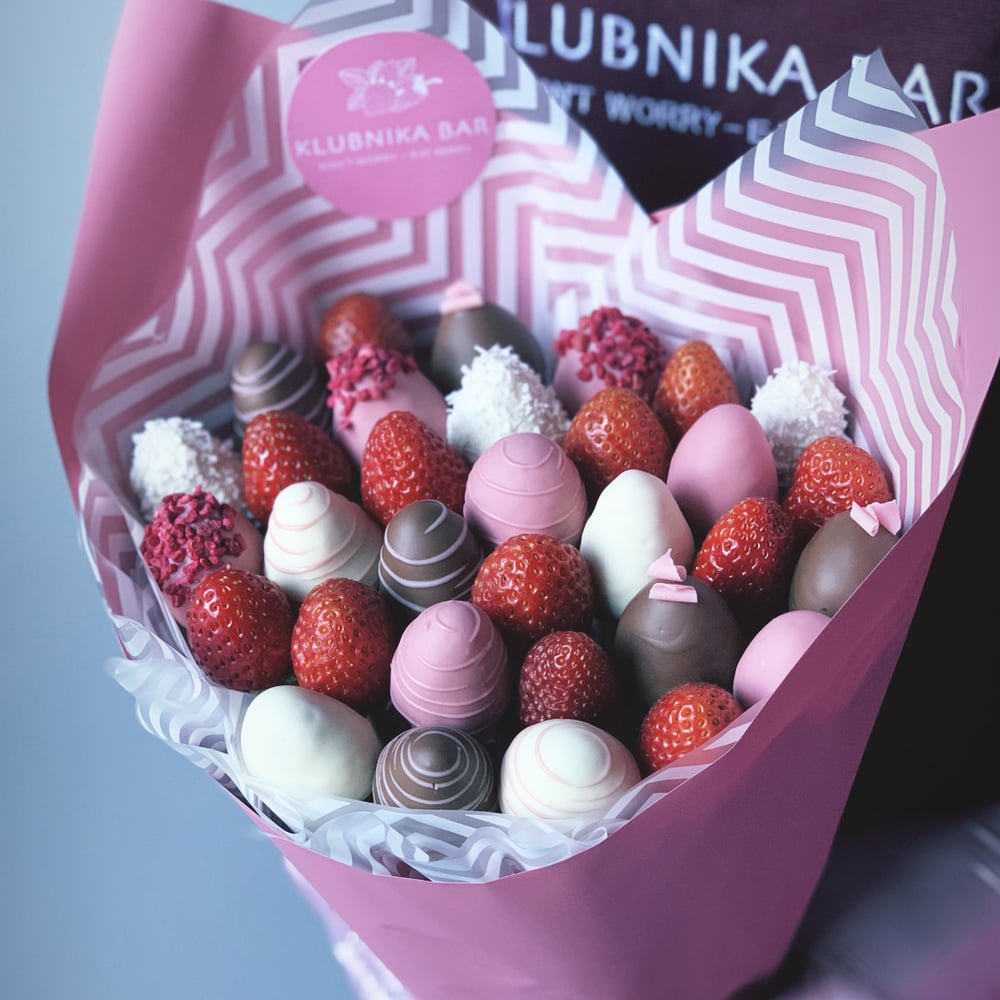 Состав: Свежая клубника в бельгийском шоколаде - 20 шт, клубника без шоколада 12 шт ☘ Натуральный продукт! Срок хранения 24 часа при температуре от +4 до +8 градусов ❤️Безопасно! Букет бережно упа…