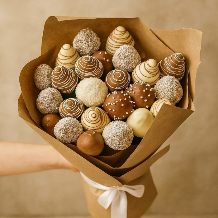 Шоколадная элегия – это утонченное творение, в котором гармонично сплетаются изысканность молочного и белого шоколада с нежной сладостью спелой клубники🍓 Каждая ягода, искусно окутанная двумя видами премиального шоколада превращается в миниатюрное произведение искусства💕🩷 Эта элегантная композиция, оформленная в натуральной крафтовой бумаге, подчеркивает естественную красоту и природные вкусы. “Шоколадная элегия” – это не просто десерт, а чувственное наслаждение, которое оставит нежное и сладкое послевкусие😘