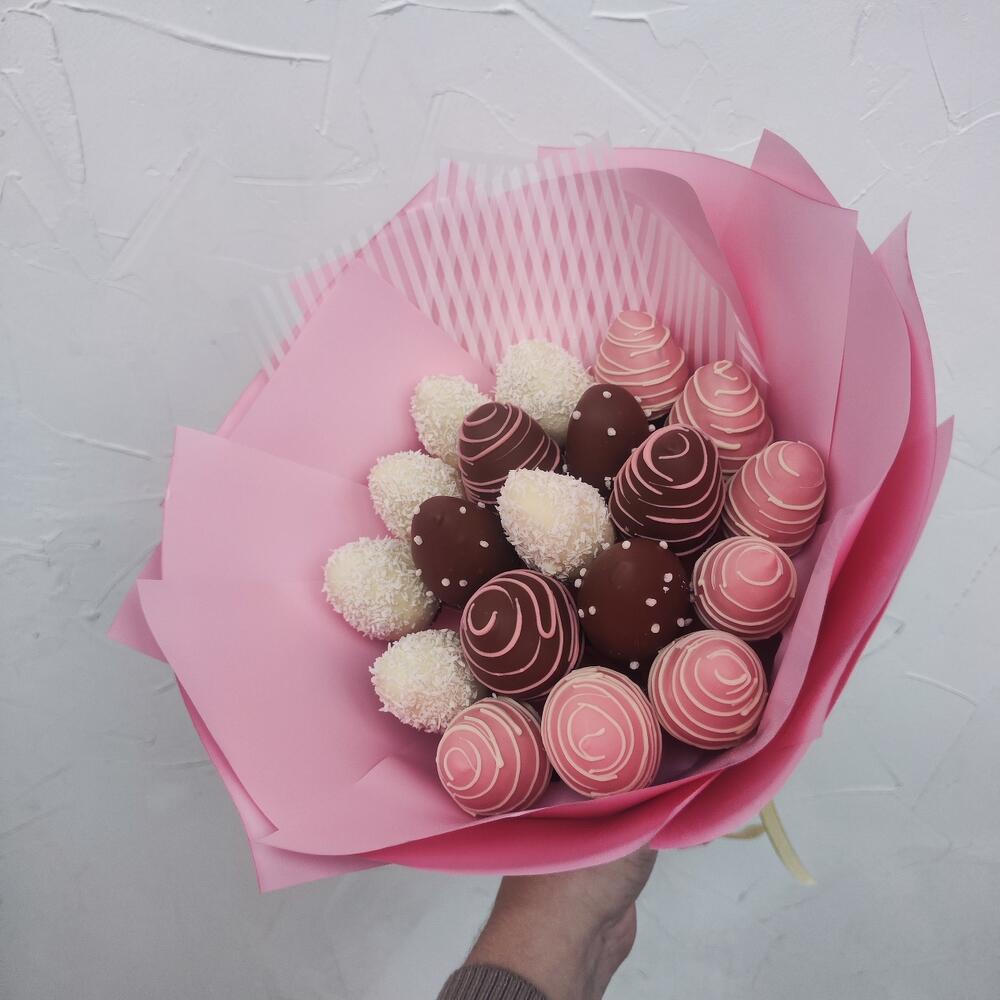 Изумительное сочетание сочной клубники и качественного белого и молочного шоколада🍓 Идеальный подарок для любимой девушки Рекомендуем употребить продукцию, содержащую свежие фрукты и ягоды, в течение первых 12 часов после покупки и хранить при температуре от +15 до +20 С. Либо хранить в холодильнике при температуре от +4 до +10 С.