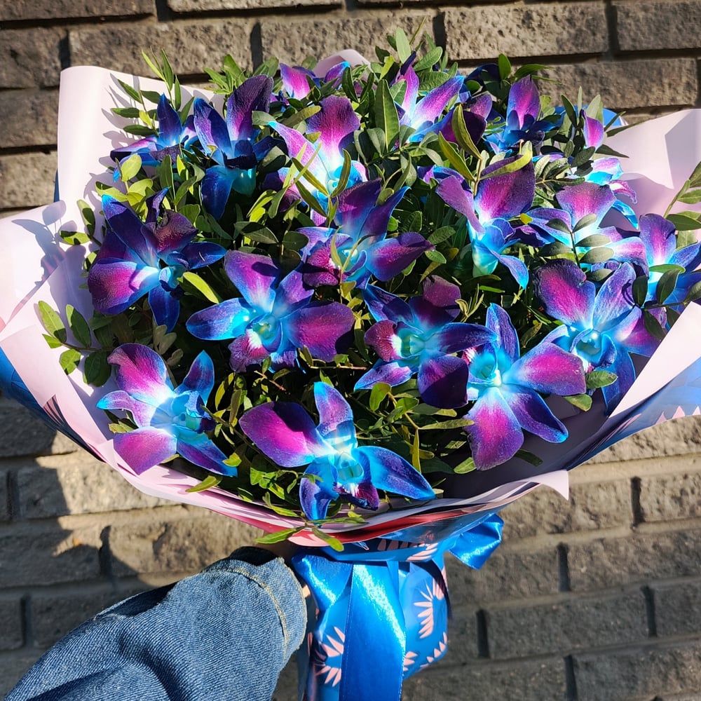Орхидеи дендробиум необычной расцветки и фисташка в дизайнерской упаковке