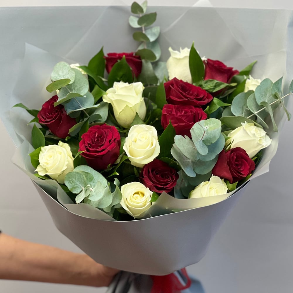 Букет из семнадцати красных и белых роз отлично подойдет на любой праздник