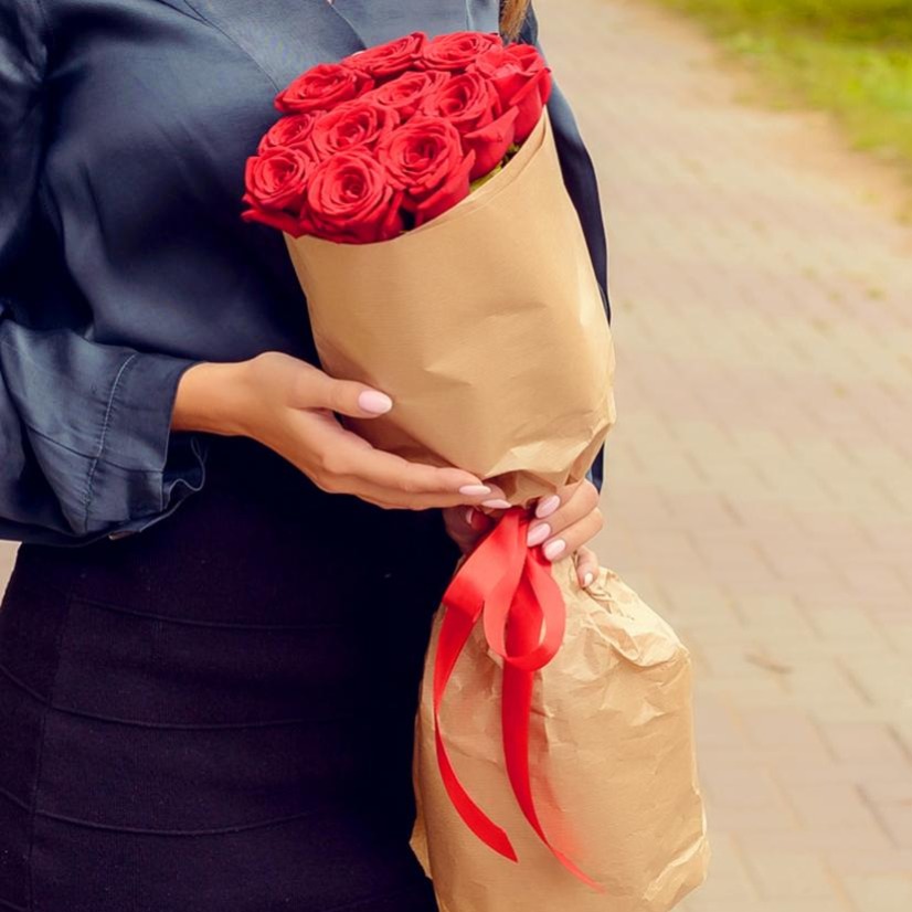 Букет из красных роз (50 см) 11 шт. К каждому букету прилагается бесплатная открытка и подкормка для цветов.