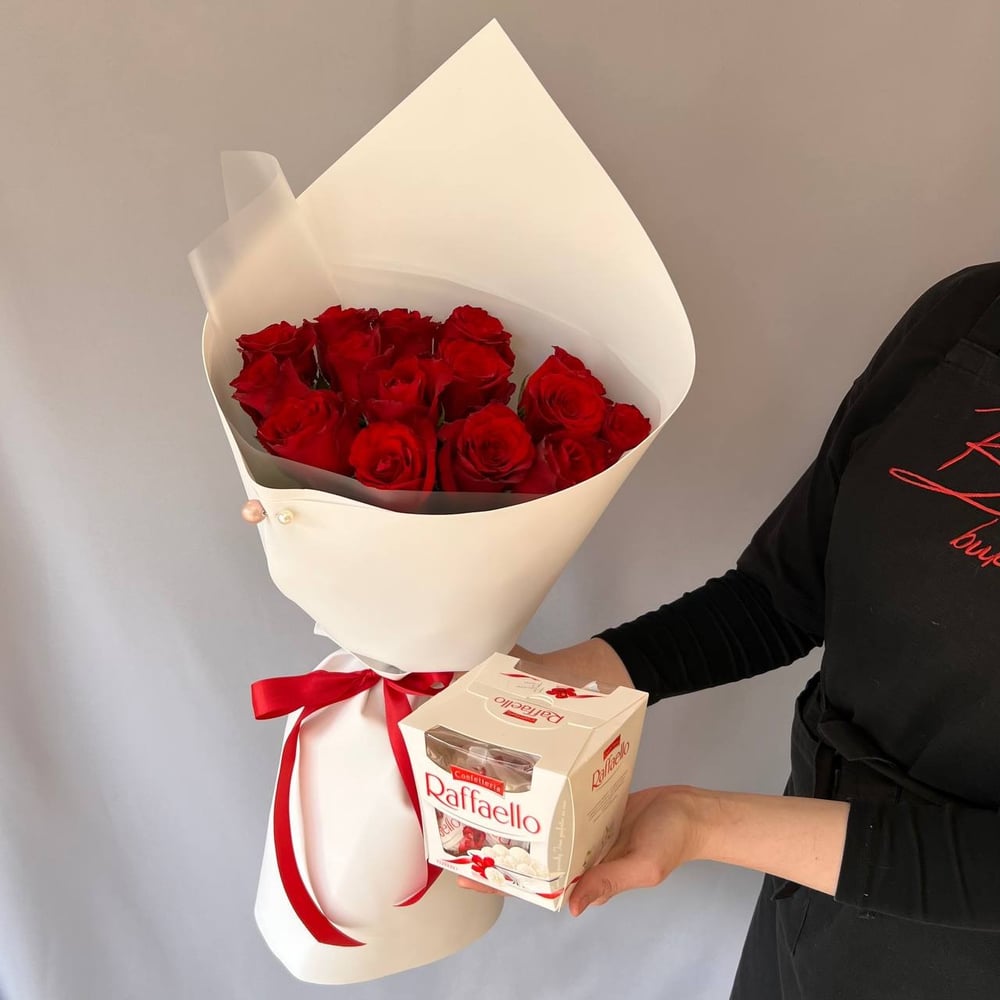Подарите своим близким незабываемые моменты радости с нашим эксклюзивным набором, который сочетает в себе великолепие красных роз и сладкое наслаждение конфетами Рафаэлло! 🌹 Букет из красных ро...