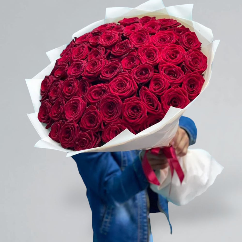 Огромный букет из красных роз! Классика всегда остаётся в моде! неважно какой праздник, но с таким букетом вы точно попадёте в самое сердце и будете в центре внимания!