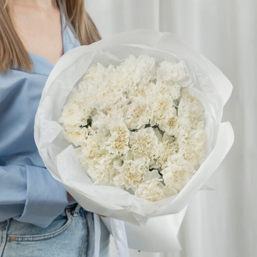 Этот утонченный букет собран из 25 кремовых цветков диантуса, которые символизируют долговечную красоту и изысканность. Он упакован в стильную упаковку и украшен атласной лентой, что делает его идеальным подарком для особых моментов в жизни. Этот букет станет прекрасным дополнением к любому праздничному случаю и порадует своей нежностью и изысканностью.