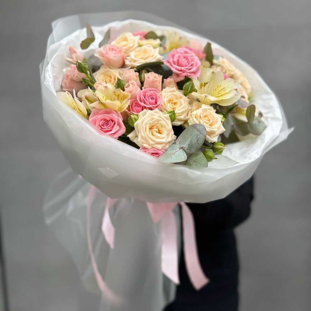 Букет из кустовой розы и альстромерии