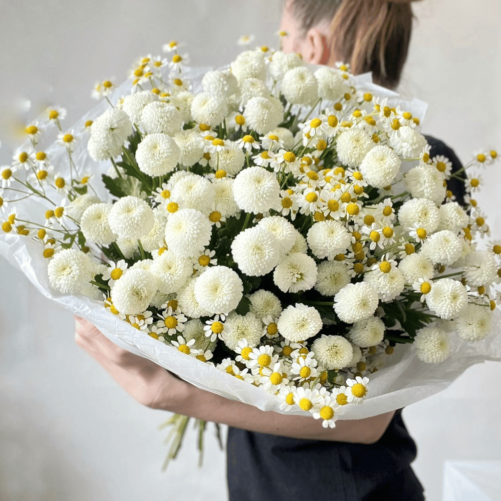 Букет из кустовых ромашек и хризантем
