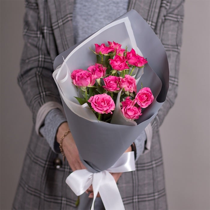 Нежный лаконичный букет из 5 кустовых роз поднимет настроение своему получателю. Подходит для различных праздничных событий или просто для комплимента любимым без повода.