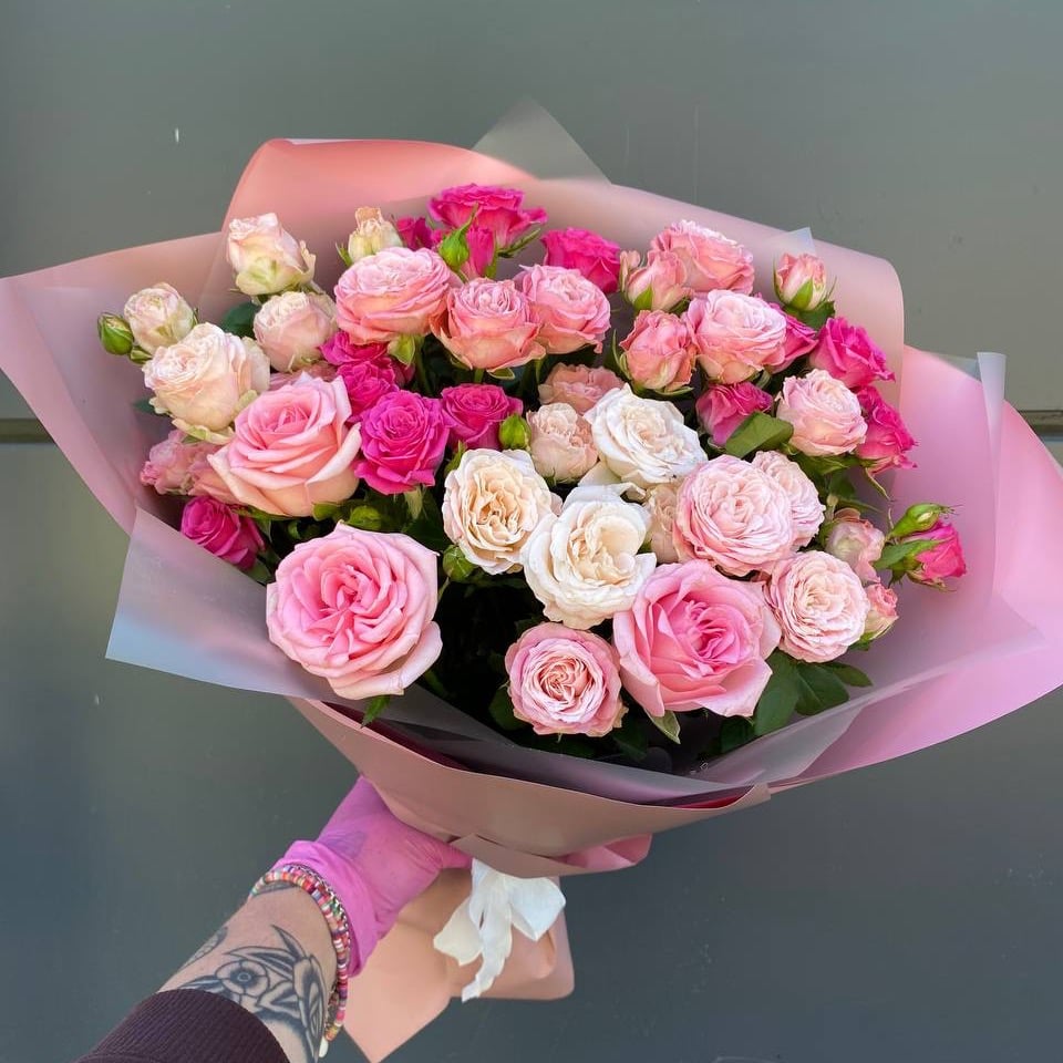 Классный яркий букетик из 13 кустовых роз в авторской упаковке