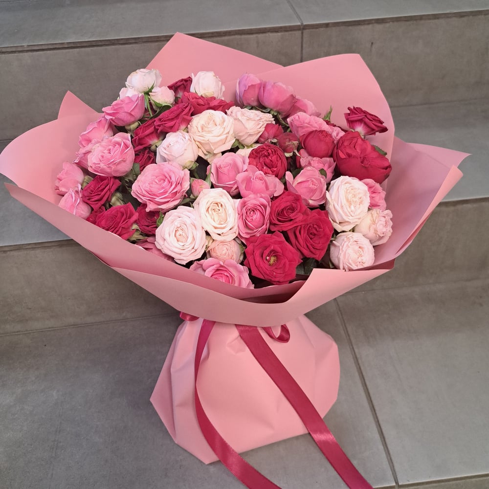 Букет из 19 роз. Кустовые розы разного сорта. Очень красивый букет. Дарите любимым цветы и хорошее настроение