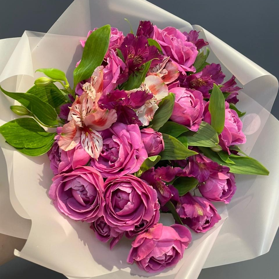 Прекрасный букет, состоящий из нежных альстромерий и изящных роз кустовых, упакованный в элегантную упаковку. Этот букет станет отличным подарком для любого случая и порадует своим красивым видом и...