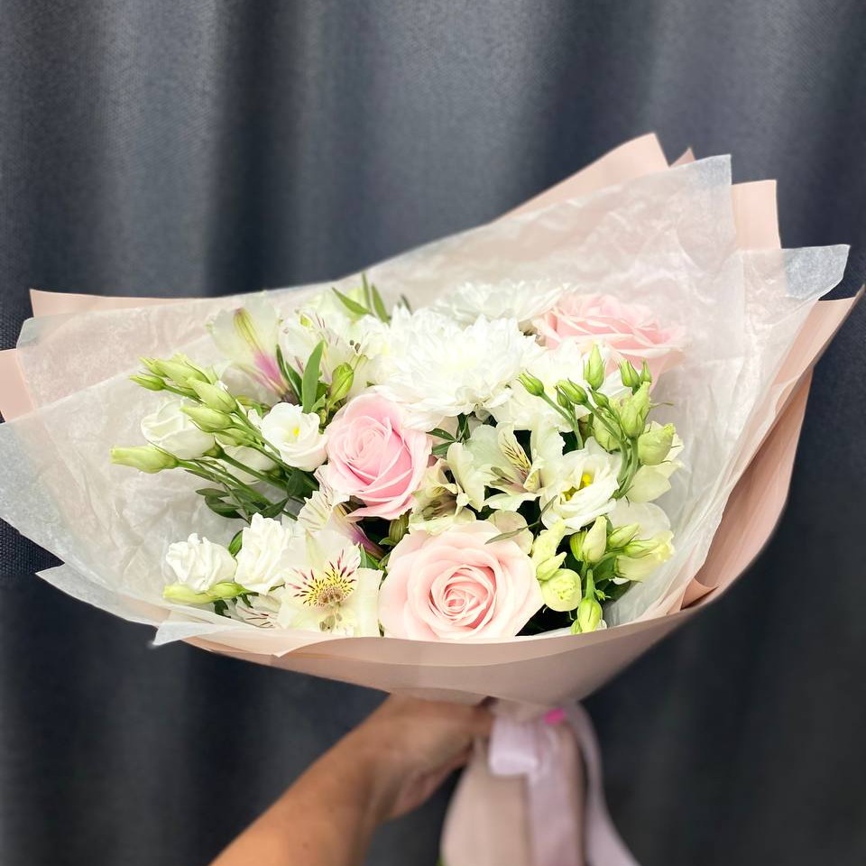 Букет в нежных тонах в дизайнерской упаковке