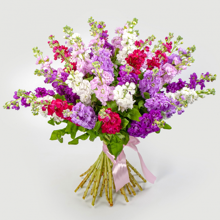 Букет из пышных соцветий маттиолы с красивыми нежными оттенками означает яркие чувства и чистые намерения любящего человека. Такой букет согреет лучами своего тепла сердце любой девушки.